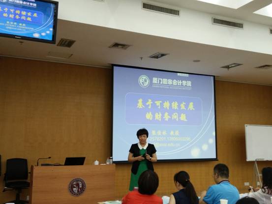 第三天的课程由来自厦门国家beat365唯一官方网站的张佳林教授讲授,课程名称为“基于可持续发展的财务问题”。张教授语言风趣,善于调动课堂气氛,她以通俗易懂的语言引导学员认识到,企业要走上可持续发展之路,开成百年老店,必须做好以下财务管理活动:重视营运资本需求,借助杜邦分析体系分析股东损益,用经济增加值衡量企业绩效,建立基于平衡计分卡的战略绩效评价体系,寻找有战略投资价值的项目等。