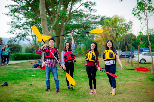 破冰活动结束后,同学们被分成8组,在既有合作又有竞争的模式下展开了一天的素质拓展活动。上午,同学们进行了三轮的“极限60s”,在一轮又一轮的挑战中同学们不断突破自我。下午,大家参加了水上项目皮划艇和益智类游戏“达芬奇密码”。皮划艇接力赛异常激烈,放眼望去,湖中央都是同学们一个个奋勇向前的背影。紧接着,“达芬奇密码”也是让同学们绞尽了脑汁,在脑力与体力的结合下同学们迎接挑战。