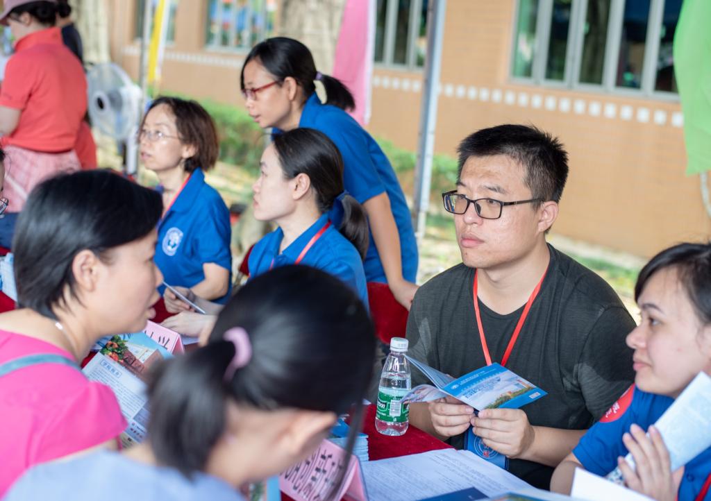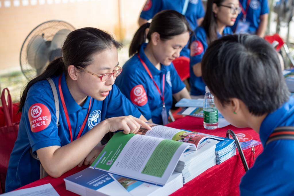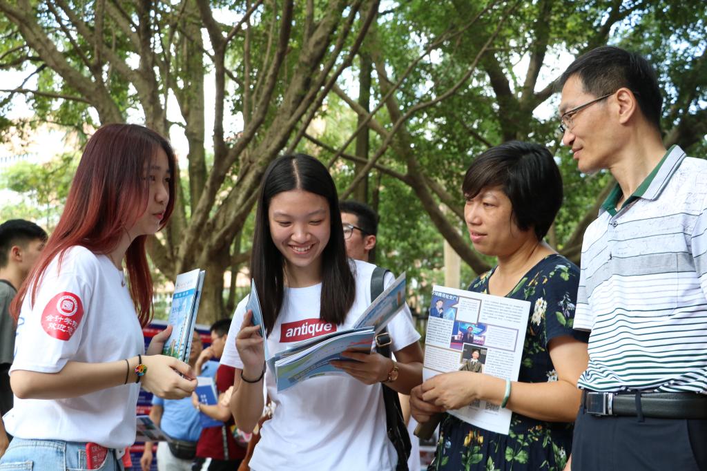 参加活动的学生们也积极地在校道上派发传单宣传,引领考生及家长到学院摊位咨询。