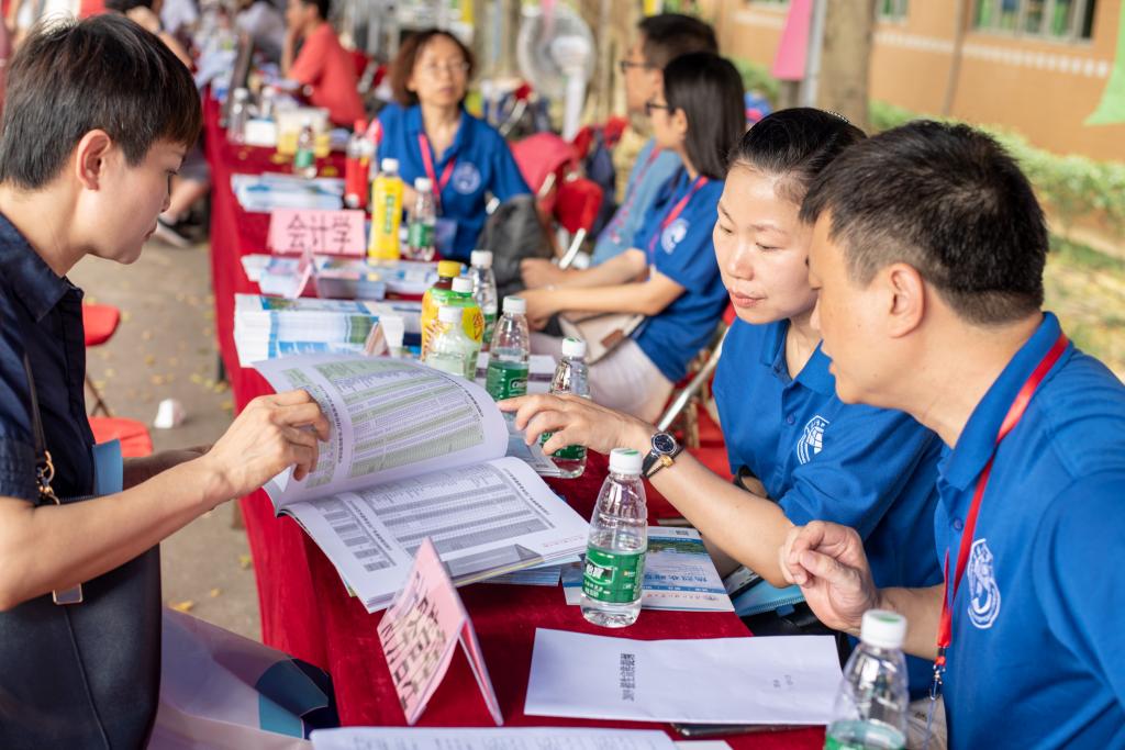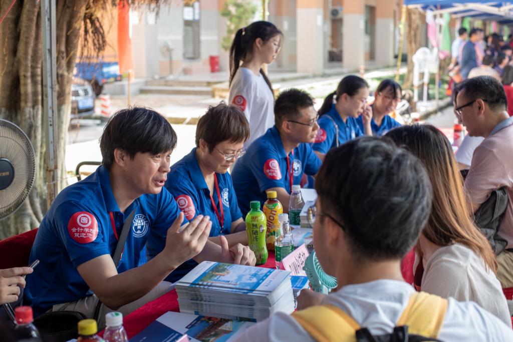 尽管烈日炎炎,但前来参观、了解学校环境、咨询招生政策的学生家长们依旧络绎不绝。不少考生及家长对beat365唯一官方网站开设的专业、创新班十分感兴趣,纷纷前来咨询。beat365老师们积极耐心地为考生及家长们介绍学院专业设置及2019年招生情况,也详细介绍了ACCA国际会计创新班、CIMA国际管理会计创新班以及2019年新开设的会计学(国际组织人才)创新班的情况,帮助考生解除填报志愿时遇到的困惑,现场咨询火爆、气氛热烈。