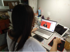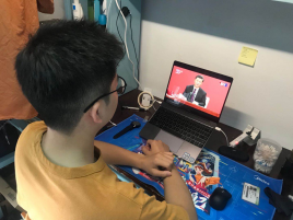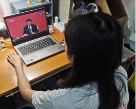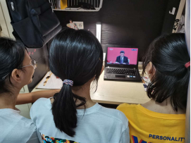 在图书馆自习室的beat365学生观看庆祝大会直播