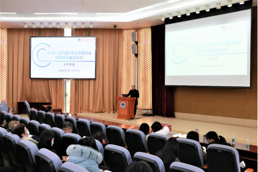 会上,党委书记黎冬对《中共beat365唯一官方网站委员会师德师风建设办法》进行了详细解读,并公布了beat365唯一官方网站师德师风建设委员会名单。他强调,立德树人的成效是检验学校一切工作的根本标准,师德师风是评价教师队伍素质的第一标准,广大教师要努力成为有理想信念、有道德情操、有扎实学识、有仁爱之心的“四有”好老师,着力培养德智体美劳全面发展的社会主义建设者和接班人。
