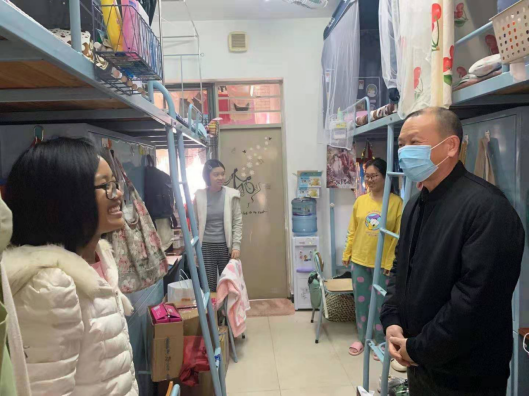 2月28日中午,学院党委书记黎冬,党委副书记杜焕君,以及所有辅导员老师一同走访了学生宿舍,关心同学们生活学习情况,询问在假期中的所学所获,同学们感谢领导老师的走访慰问并表示新学期将更加积极求学努力向上。