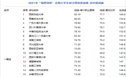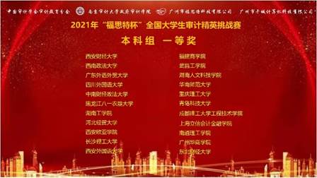 2021年11月14日,审计系主任黄浩老师率领张子婧、姚晓娟和刘子骁三位同学参加由中国审计学会审计教育分会主办,南京审计大学承办的第四届“福思特杯”全国大学生审计精英挑战赛,来自南京审计大学、西南政法大学、中南财经政法大学、东北财经大学、江西财经大学、西安外国语大学、上海立信会计金融学院、华南师范大学等全国283个兄弟院校参赛,累计共3000余名师生参加了本次比赛。
