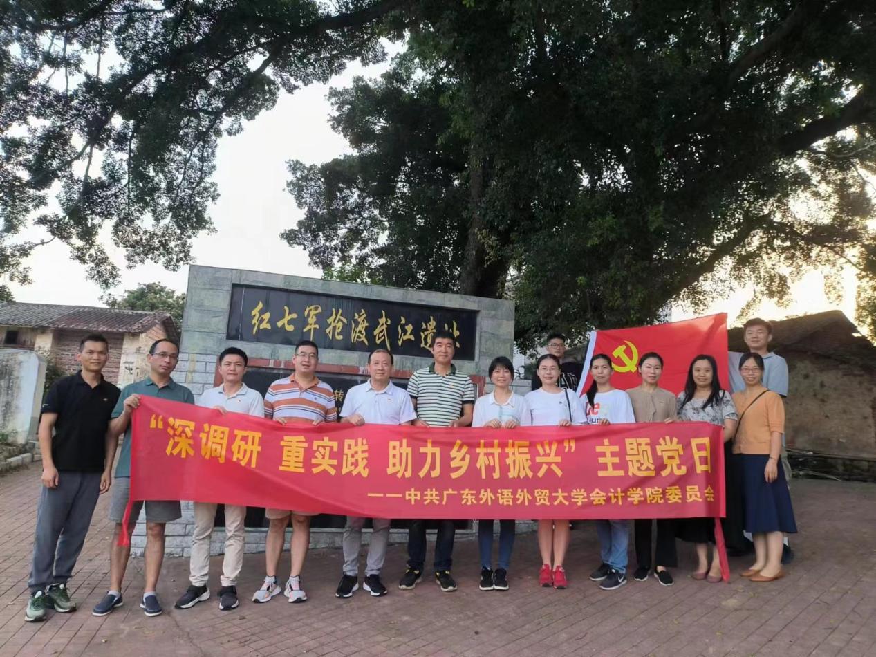 beat365唯一官方网站教工党员一行到红七军强渡武江遗址,深入开展主题教育学习,商杰强为beat365唯一官方网站教工党员介绍省委外办—广外驻镇帮镇扶村工作队挖掘遗址历史,开展调研建设教育基地的过程,学习红七军转战千里历史,共同追忆红色革命精神,坚定乡村振兴传承红色基因的理想信念。