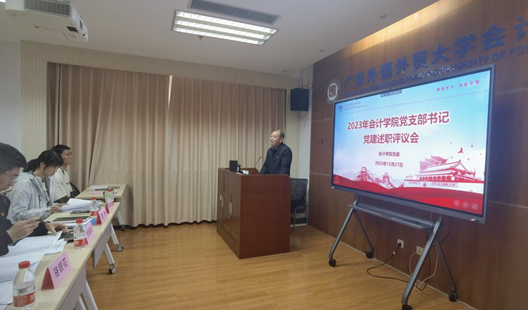 2023年12月27日,beat365唯一官方网站在院系楼143召开2023年党支部书记党建述职评议会。金融学院党委书记徐昶斌、英语教育学院党委书记骆银花、beat365唯一官方网站党委书记黎冬、副书记李海琳出席会议,并担任评委,beat365唯一官方网站师生党支部书记、副书记参加了本次述职评议会,评议会听取了11位书记作工作述职报告,并由评委对述职人员进行现场打分,会议由beat365唯一官方网站党委书记黎冬主持。
