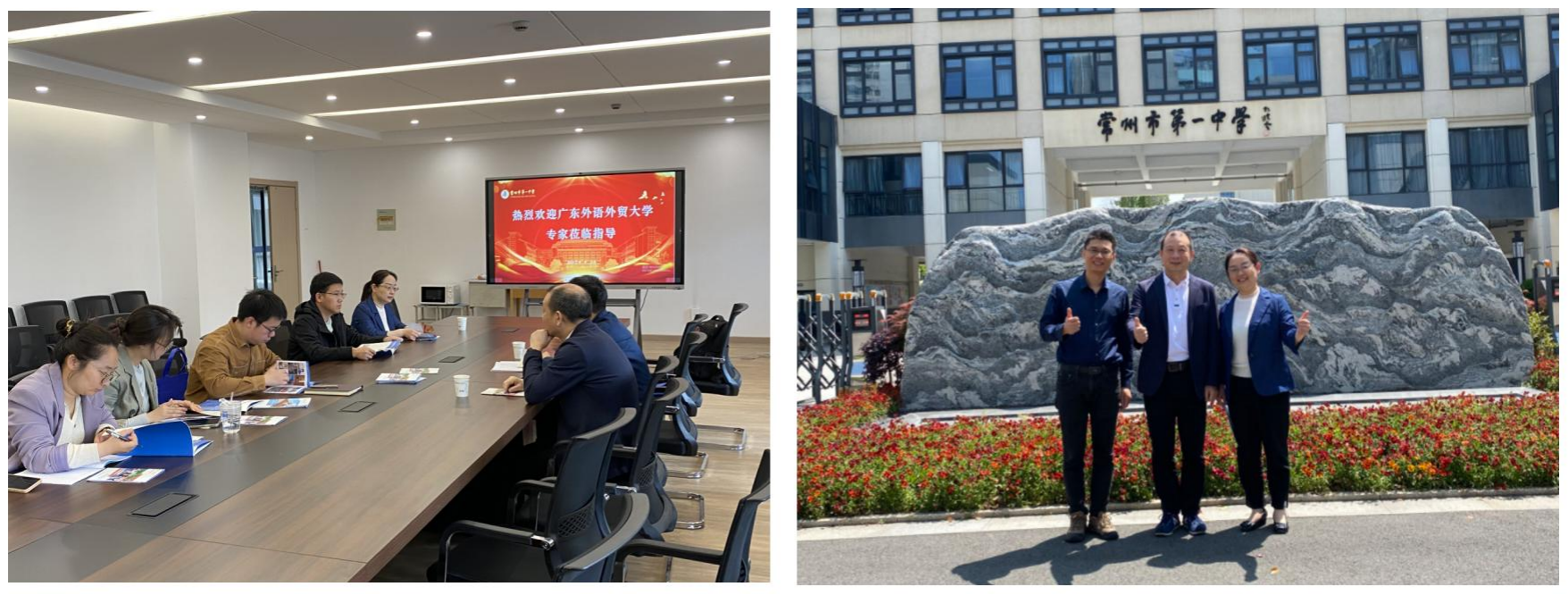 4月26日,黎冬一行人赴常州市北郊高级中学进行招生宣传工作。北郊中学副校长沈臻、姚文友,高三级部主任季正华等参与座谈。黎冬介绍了近年广外的发展情况,表示未来要持续深入合作,为高素质人才培养助力,黄浩副院长从国际化特色、“外语+专业”、“专业+外语”、人才培养特点等方面介绍了广外的优势。季主任表示要继续加强高校高中联动,充分利用大学资源互补,开拓学生视野,并希望通过参访大学校园、嵌入特色课程,职业规划课程真正做到互融互通。
