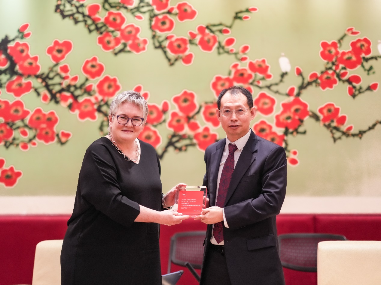 申明浩热烈欢迎白容总裁一行的到来,并详细介绍了广外近年来在学科建设、科研创新及国际交流等方面所取得的显著成就。广外作为华南地区的知名学府,一直以来致力于培养具有国际视野和综合素质的高端人才,在会计与财务管理领域更是取得了突出的成绩。特别值得一提的是,广外在最近获得了华南首个ACCA白金级教育机构资质认证,成为区域内首屈一指的高水平会计教育基地。白容对广外取得的这一重要成就表示热烈祝贺。她表示,广外在会计教育领域的不断创新和突破,为华南地区乃至全国的财会人才培养树立了标杆。她期待未来能够与广外在更多领域展开深入合作,共同推动会计教育的高质量发展。在随后的交流中,双方围绕企业ESG、人才培养和数智课程等热点话题进行了广泛讨论,并分享了ACCA在全球范围内推动人才培养和智能课程发展的经验和成果。