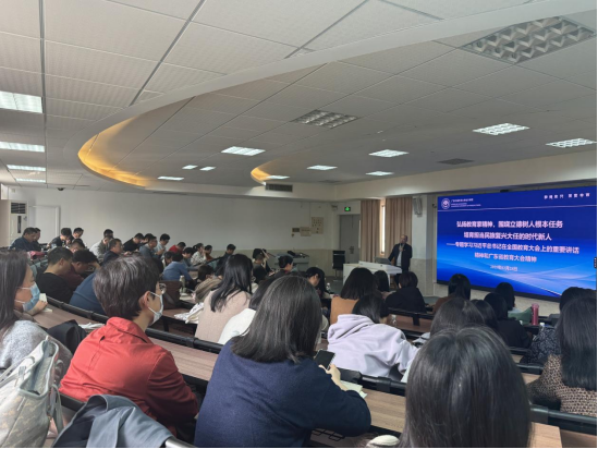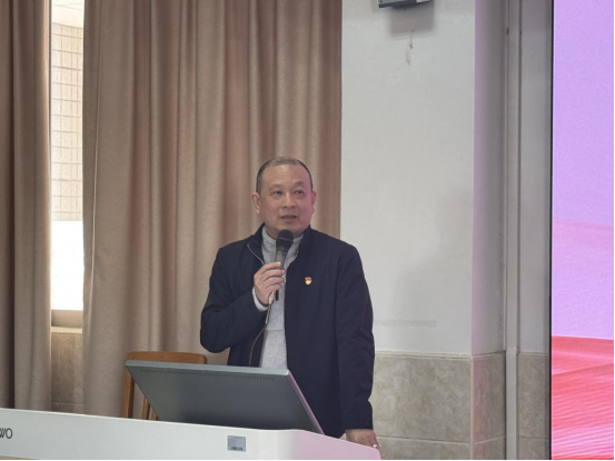 会议第二部分,党委书记黎冬以《弘扬教育家精神,围绕立德树人根本任务培育担当民族复兴大任的时代新人》为题,带领全体教职工专题学习习近平总书记在全国教育大会上的重要讲话精神和广东省教育大会精神。他指出,全体教职工要坚守教育初心,牢记育人使命,严格遵守教师职业道德规范。他提出,新学期党建工作要与学院中心工作深度融合,以党建引领学院发展,培养具有家国情怀、国际视野、创新能力的复合型财经人才。