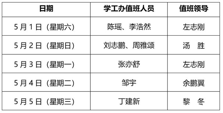 根据学校安排,2021年劳动节5月1日至5日放假调休,共5天,4月25日(星期日)、5月8日(星期六)上班。现将相关事项通知如下: