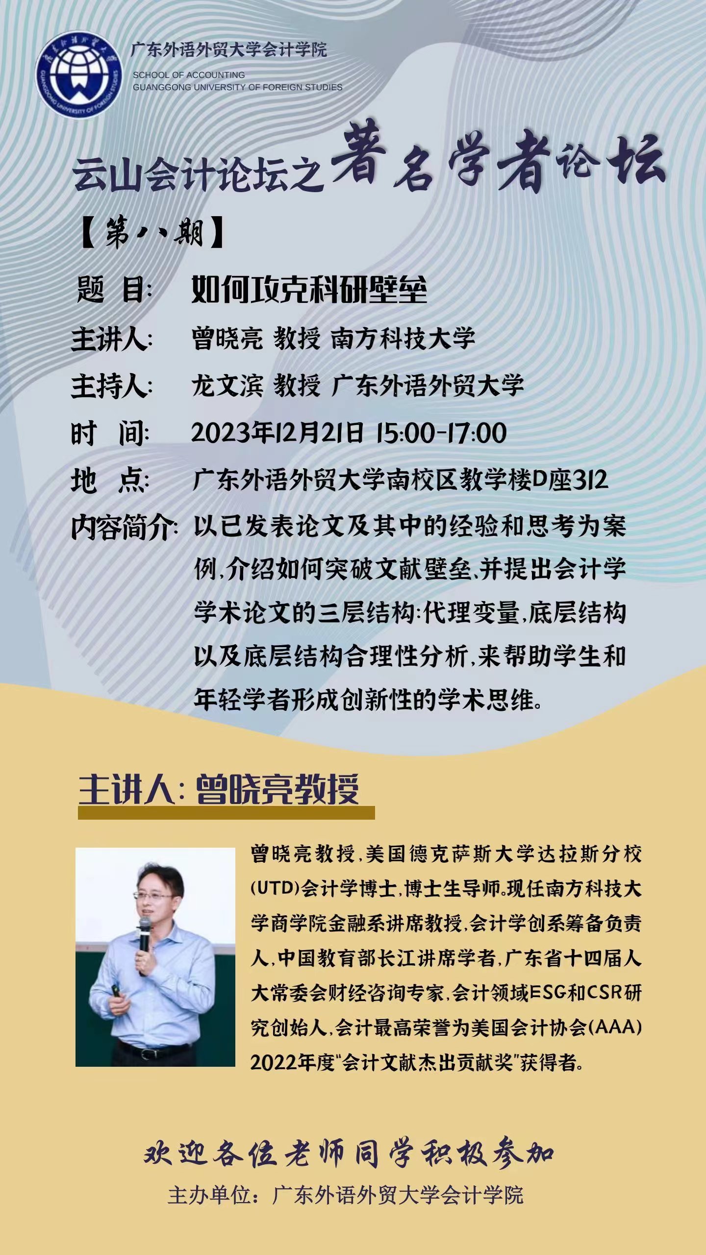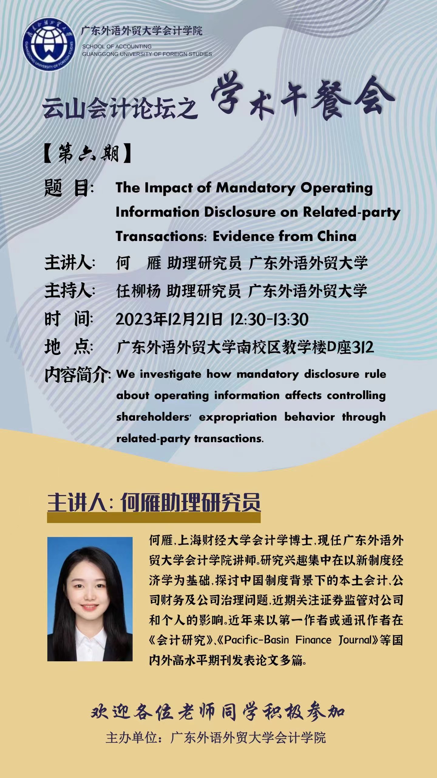 何雁博士和曾晓亮教授主讲云山会计论坛第八期