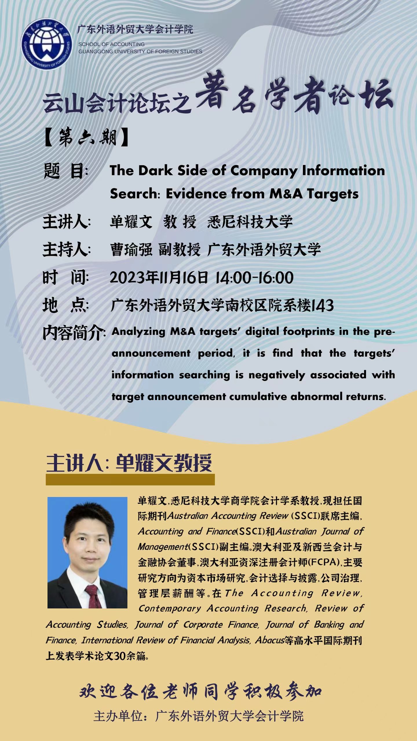 孔东民教授和刘倩茹博士主讲云山会计论坛第四期