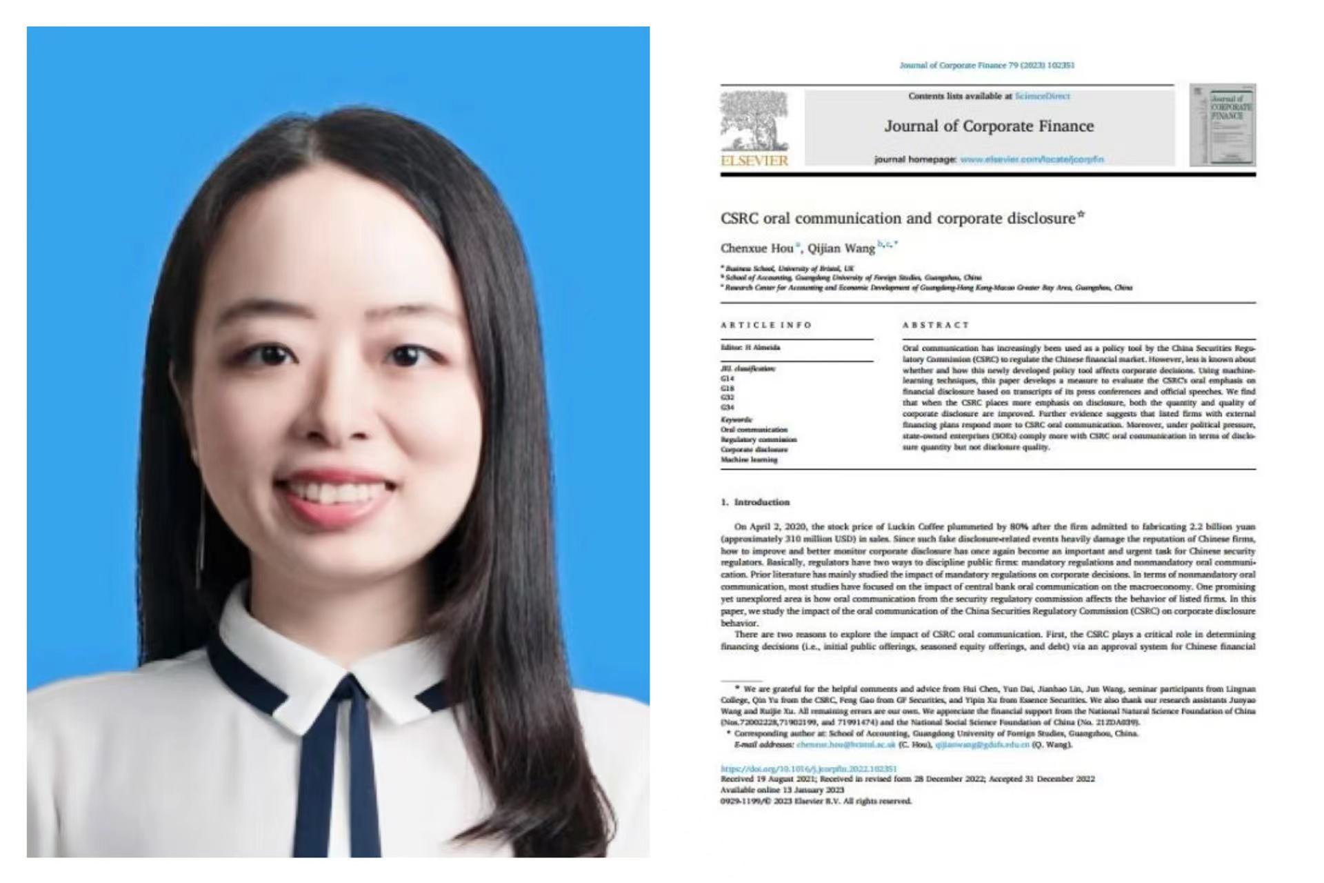 beat365财管系讲师王起健作为通讯作者的论文《证监会口头沟通和企业信息披露》于2023年4月发表在国际财务学科权威期刊Journal of Corporate Finance。
