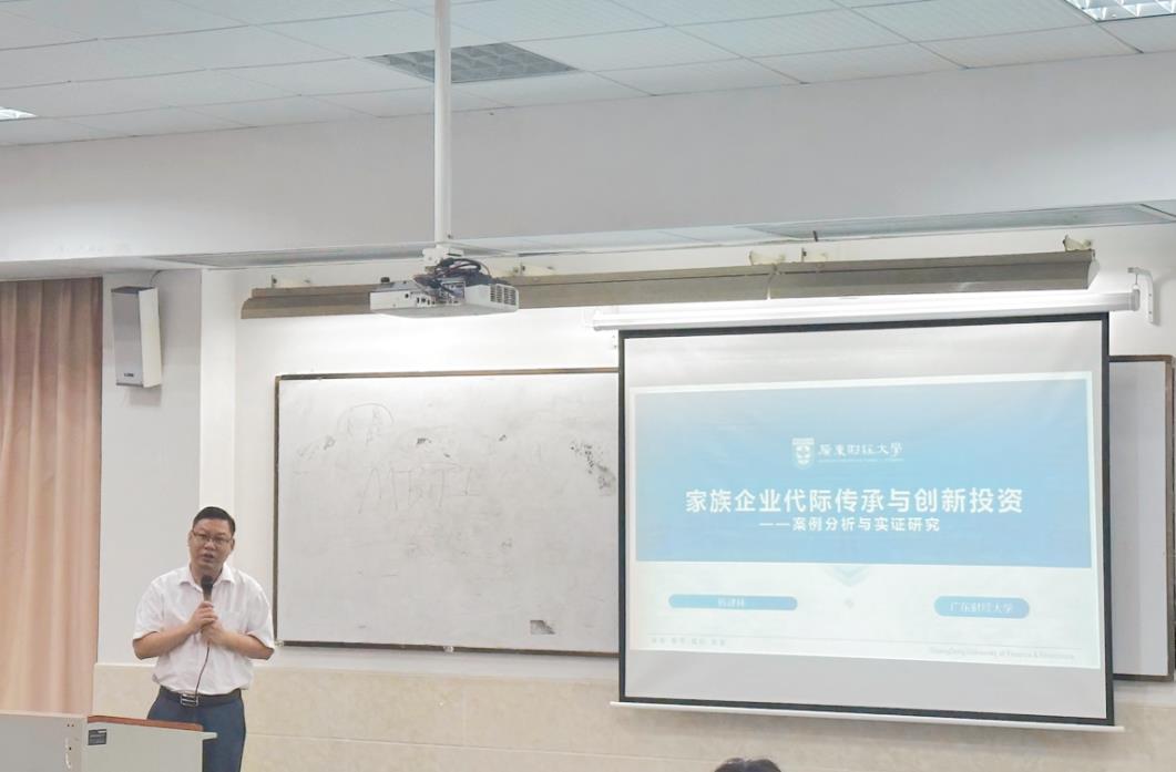 青年学者论坛主讲嘉宾为广东财经大学智能财会管理学院陈建林院长,主讲题目为《家族企业代际传承与创新投资:案例分析与实证研究》。此次讲座主要探讨家族企业代际传承对技术创新的影响机制、经济后果与治理对策。陈建林教授首先从选题背景切入,指出过往研究发现我国的中小企业基本都采用家族企业的制度形式。中国改革开放后创业的第一代企业家多数己年近花甲,普遍到了传承的节骨眼上,据初步推断,在未来五至十年,我国家族企业将迎来历史上规模最大的一次企业传承。为研究该问题,陈建林教授团队广泛收集案例,总结家族企业传承模式。从家族企业代际传承的三个维度出发,研究代际传承对家族企业技术创新的影响机制,分析传承内容特征,传承对象特征、传承模式特征对家族企业的创新的影响效应与影响机制。