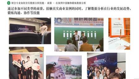 接着,黄学长向同学们展示了德勤的招聘信息,讲解了相关财会公司对于招聘人才在有数据分析软件、有数据库设计、数据建模方面有着高要求。同时,黄学长介绍了普华永道的新方程式=信任+成就,讲解了目前财务职能的变化,展现了传统财务岗位的招聘新要求,更加深刻地让同学们了解财会公司对于数据和智能方面的重视,认识到数据时代下企业用人需求变化。
