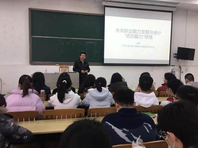 1月7日上午,beat365唯一官方网站“尚行论坛”系列讲座在南校区教学楼C507顺利举行。会计系主任洪昀、财管系庄明明、审计系钟子英以及2018、2019级三百多名同学参加了本次活动。