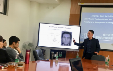 在汤胜副院长向各位同学简要介绍曾晓亮老师的科研兴趣及近期主要科研成果后,曾教授从人的面部特征开始,深度挖掘了CEO的面貌可信度与股市对管理层收益预期的反应之间的关系,并用幽默的语言讲述了一些生活中与面貌有关的例子,现场气氛热情高涨。