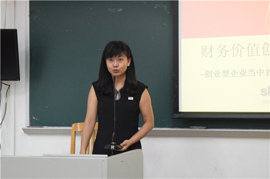 接下来主讲的嘉宾是郑女士,她讲述的主要内容是创业型企业当中首席财务官的角色与财务的价值创造。她以自己所在的公司斯凯荣为例,强调了CFO对一个创业企业的重要性。在讲座过程中,她展示了一个创业板CFO研究报告,报告中反映了当今有关CFO的一些现象,如男性CFO是女性CFO的两倍,担任CFO职位的人科班出身比例高,以及CFO多数持股数量少于50万等。这些现象都值得我们一一去分析其内在原因,将这些思考融入到自己的职业规划中,寻找适合自己的职业道路。此外,郑女士讲到30-50岁是职场生涯的“黄金时段”,并告诫我们要把握好大学毕业到30岁这段宝贵的奋斗时光。最后,她介绍了作为高素质人才的职业能力框架以及我们要如何将我们所学的专业知识应用到一个企业当中,更好地去创造我们的财务价值。