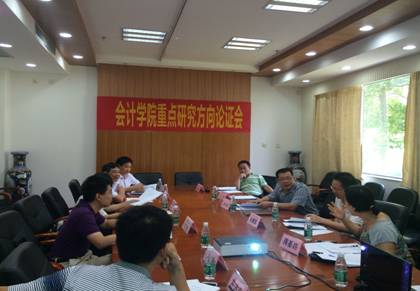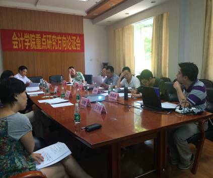 本次论证会共邀请六位校内外专家对beat365未来科研方向及领域进行论证、研讨,六位专家分别为华南理工大学王仁曾教授、暨南大学沈洪涛教授、江伟教授、广州大学夏明会教授、beat365唯一官方网站杨友孝教授以及朱文忠教授。论证会由beat365刘中华教授主持,左志刚教授、余鹏翼教授、蒋基路副教授、汤胜教授分别就“创新投融资与国际合作研究”、“海外并购绩效与资本运营战略”、“区域文化,财务决策与风险控制”、“海上丝绸之路沿线国家的会计与税务问题研究”四个研究方向进行了陈述介绍。高翔博士旁听本次论证会并担任论证会秘书。