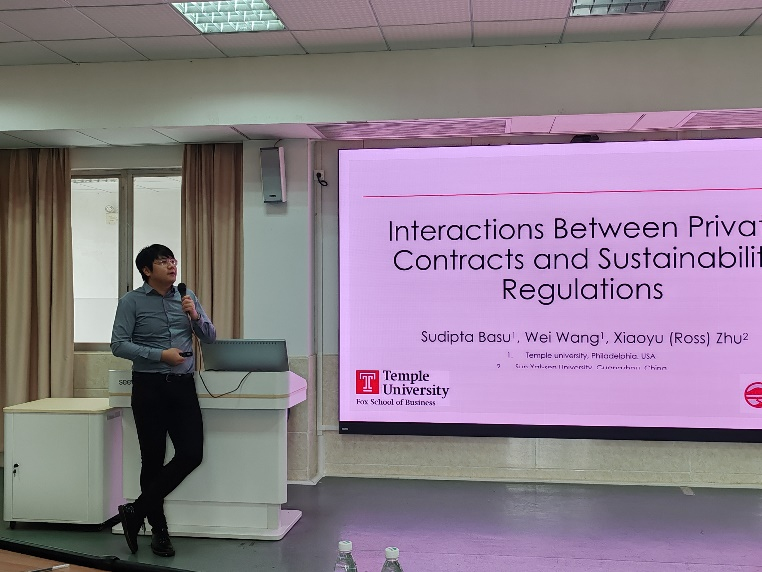 2024年6月6日下午,云山会计论坛系列学术讲座第十二期、青年学者沙龙第三期于beat365唯一官方网站D座312会议室举办。青年学者沙龙由beat365唯一官方网站钟子英老师主持,邀请朱效禹助理教授作为主讲嘉宾,带来题为“Interaction Between Private Contract and Sustainability Regulation”的讲座。朱效禹老师现任中山大学岭南学院金融系助理教授,博士毕业于纽约城市大学-巴鲁克商学院,研究领域为ESG、银行以及公司金融。