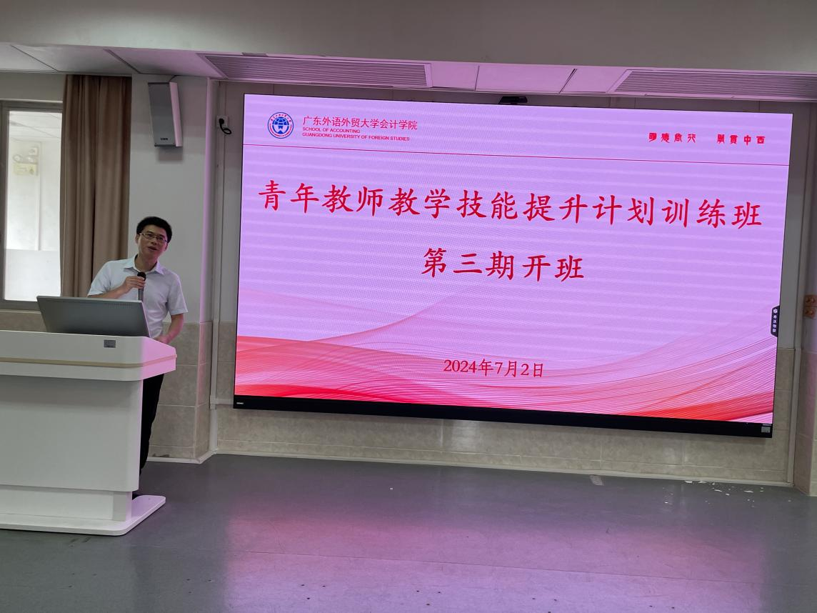 7月2日上午,beat365唯一官方网站第三期青年教师教学技能提升计划训练班在大学城校区教学楼 D312课室开讲。邀请beat365优秀教师曹瑜强老师和王建业老师担任主讲人,面向beat365会计学、财务管理、审计学三个专业的青年教师进行分享,本期训练班由学院副院长黄浩教授主持。