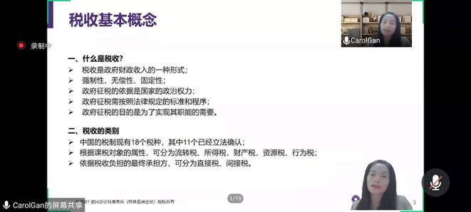 甘小月从税收的作用、类别及意义等方面阐述了税收的基本概念,并巧妙地引用富兰克林的名言“税收和死亡是人生无法避免的两件大事”,进一步分析税收对国家、企业及社会的影响程度。同时,她还从近年国家财政数据、减税降费、税务监管趋势及“反洗票”系统四个方面,围绕新冠疫情背景下企业“冰火两重天”的局面,解读税收在社会中起到的平衡作用,并且介绍了国家加大打击隐瞒收入、虚列成本、转移利润以及利用“税收洼池”、“阴阳合同”和关联交易等逃税行为力度的相关措施,我国营商环境不断优化。