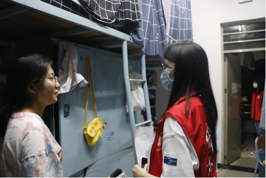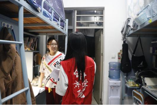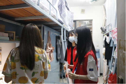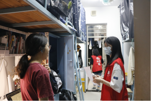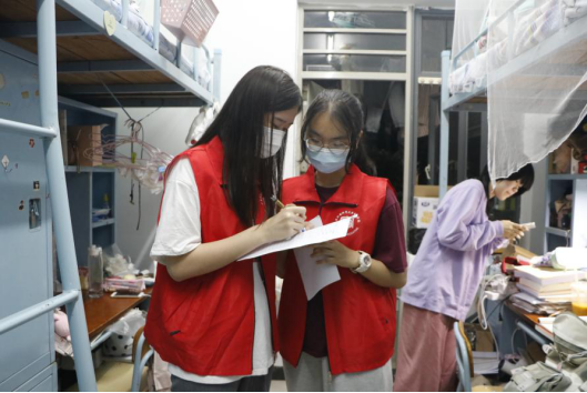 志愿者认真查看beat365唯一官方网站学生的宿舍内部、阳台、厕所和浴室的卫生,对宿舍阳台是否存在积水以及是否使用大功率电器等问题进行认真检查。提醒同学们要及时清理积水,以防滋生蚊虫传染登革热,切忌使用大功率电器或私接乱接电源,保证宿舍用电安全。同学悉心听取改进意见,积极配合解决宿舍存在的问题。