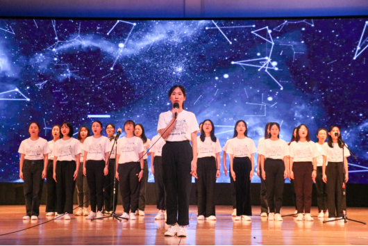在ACCA2001班的精彩表演之后,Amusi歌队演唱的歌曲《Blank Silence》让现场沸腾,引得观众尖叫欢呼。院民舞队精心编排舞蹈《花雨落》向母校献礼,她们曼妙优雅,展现古典优美之形。纸伞翻飞,婉转而轻柔,让观众们体会到中华优秀传统艺术文化之美。