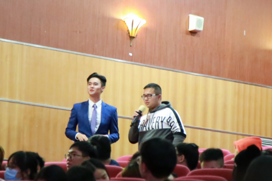 在晚会的中场环节,还进行了轻松有趣的互动小游戏环节。台下的同学们积极热情参与互动抢答,现场氛围活跃。