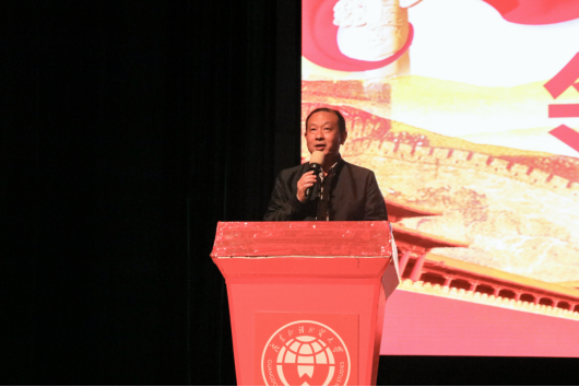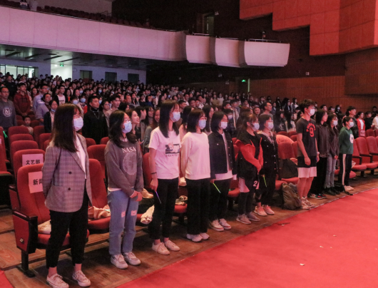 晚会开始前,全体师生起立奏唱校歌,共同庆祝母校55岁生辰,表达对母校的美好祝愿。在师生们激昂热情、铿锵有力的歌声中,晚会正式拉开了帷幕。