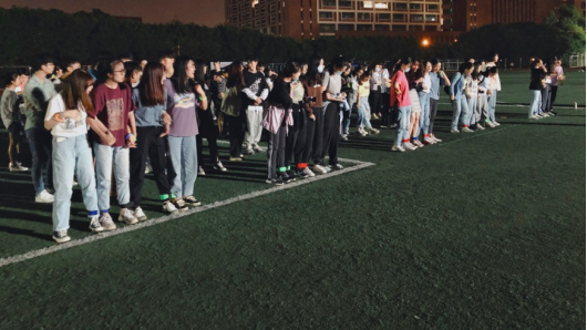 随后,比划猜词和四手五脚比赛同时开展,各小组分别派代表参与不同的活动。比划猜词需要靠动作传达词语,考验了同学们的肢体表达能力和默契程度。四手五脚则需要根据裁判要求做到几只手或脚在地面,考验了同学们的快速应变能力和信任程度。比赛在紧张而热闹的氛围中顺利结束,裁判们宣布比赛结果,并为表现优异的队伍颁发奖品。最后,参加本次夜跑起跑仪式的同学们和张亦舒老师合影留念。