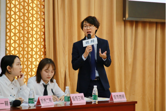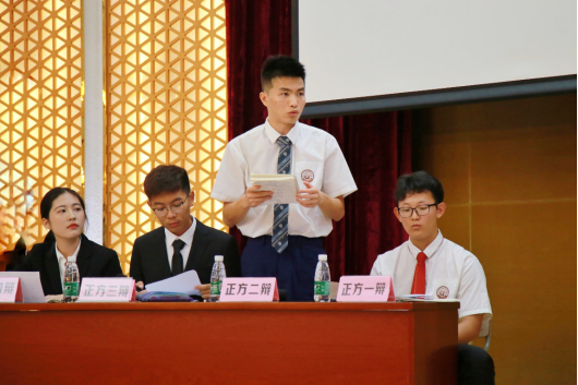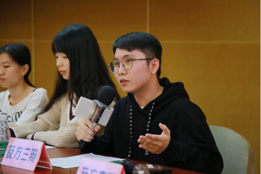 比赛开始,双方一辩开篇立论。正方一辩就“看到负面新闻要立即站出来表态”作出立论,首先对 “负面新闻”下定义,进而深入剖析了要立即表态对促进新闻事件本身的解决以及对社会发展的意义;反方一辩则在定义的基础上指出了立即表态的弊端,阐述了不立即表态能够引导社会理性思考,良性地促进事件解决的观点。