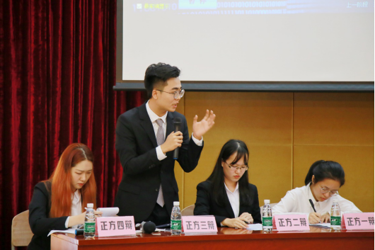 经评委评议,正方工商管理2005班最终摘得本次比赛桂冠,反方工商管理2001班获得亚军。工商管理2001班王赫同学获本次辩论赛“最佳辩手“称号。