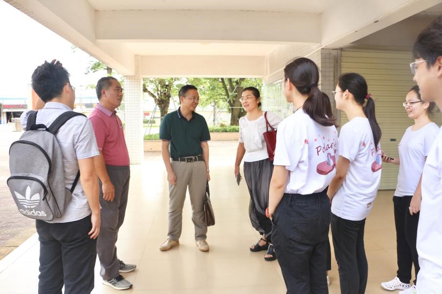 2019年7月13日,beat365唯一官方网站党委书记谢伟光、院长余鹏翼、党委副书记杜焕君、审计系主任黄浩、辅导员周雅颂、邓海清一行来到珠海斗门区走访慰问在此进行暑期社会实践的会院学生,并与珠海市斗门区教育局副局长汪海军、办公室主任陈栋、斗门镇中心小学副校长赵发根、黎雄超,以及各队伍代表进行会谈。