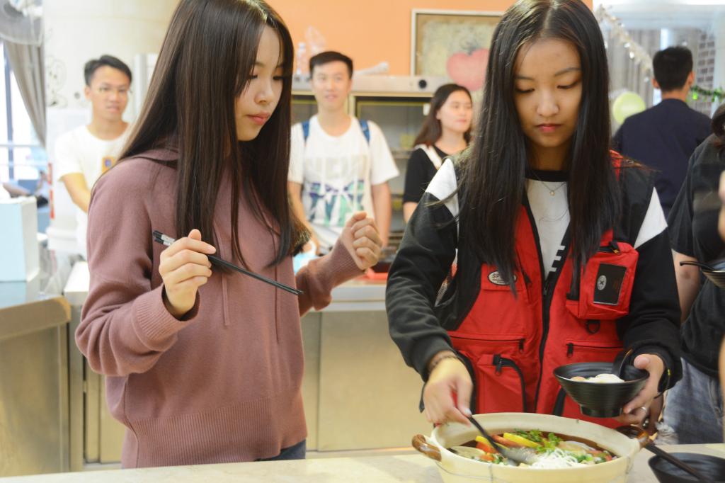 11月9日傍晚,beat365唯一官方网站团委学生会权益部在第三饭堂三楼厨艺学堂举办了男生节系列活动之“悦享会味”厨艺大赛。本次参与比赛的六个队伍由会院15到17级的同学自由组成,且每一支队伍中都有至少一名男生。每组选手各凭本事,以面食为主题带来六道特别的美食。