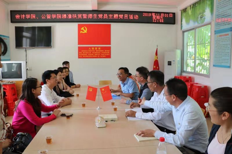 在蒲芦洲村委会的党员活动室,beat365唯一官方网站和公管学院师生党员一起与驻村干部开展座谈,听取植仲培对蒲芦洲整体情况介绍及学校驻村开展扶贫工作以来所取得的成效,随后大家针对扶贫工作提出可持续发展的意见和建议,并表达了深入贯彻落实学校“不忘初心、牢记使命”主题教育工作精神,以实际行动响应党中央精准扶贫的号召决心。
