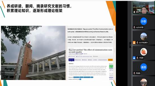 最后娄权老师关从积累理论知识,保持数学思维,保持逻辑思维训练,学习规划理解大方向,钻研1-2个行业,学习政策文件,充分利用各种学习平台等方面对同学们如何进行研究型审计进行了指导,并鼓励同学们不断提升自己。同学们一致表示在讲座中收获颇丰,拓宽了眼界,对研究型审计的认知得到了进一步的提升。