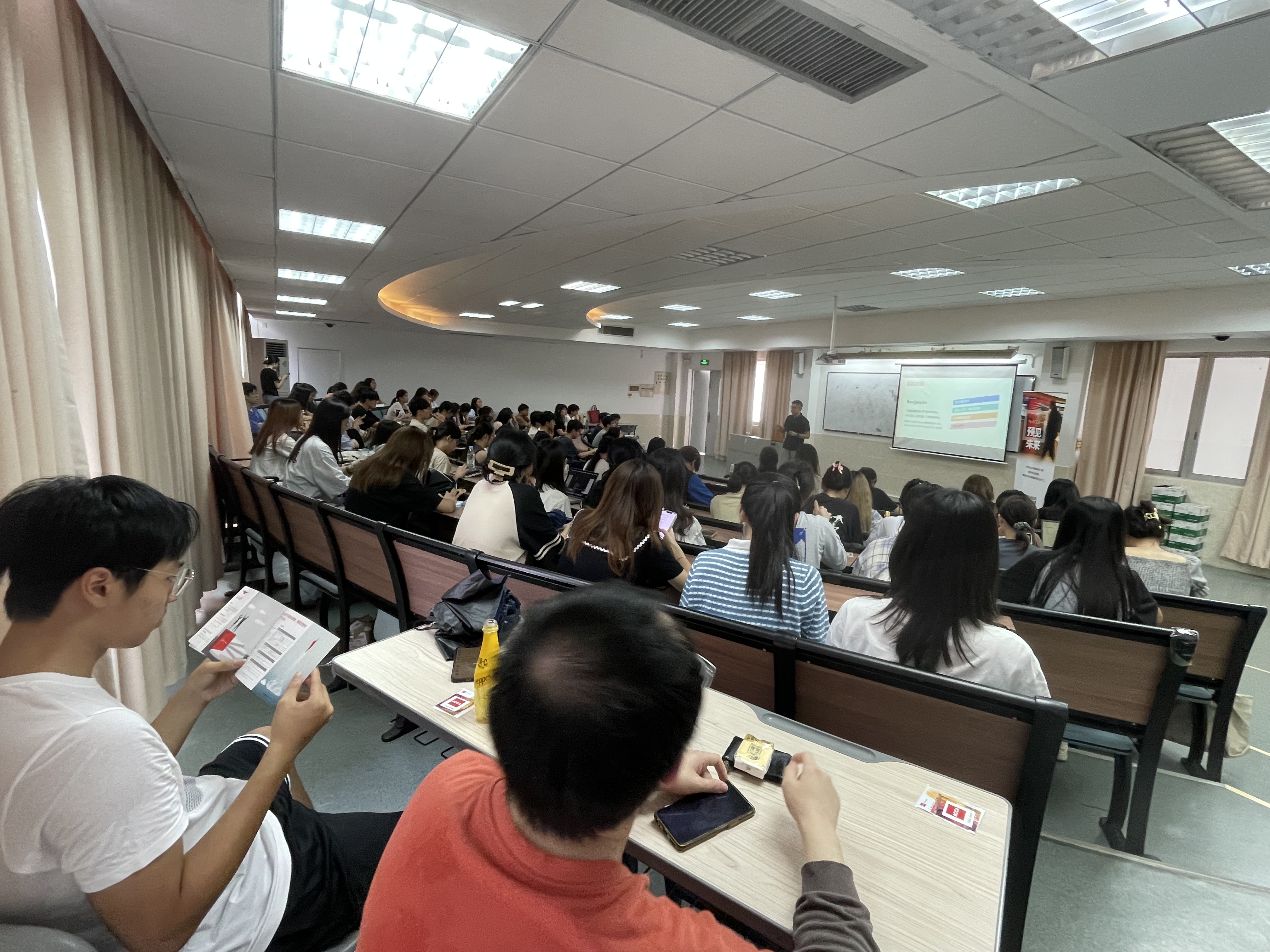 在最后的互动环节,会院学子抓住机会向老师提出问题“企业实施环境友好的措施后,企业的可持续效益是怎么体现的呢?”Benjamin从企业长期和短期发展的角度对其进行解答,让同学们对ESG理念有了更为直观的理解。